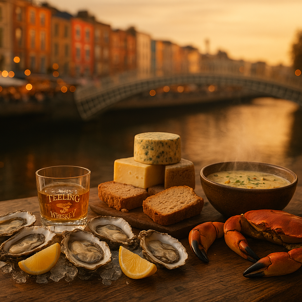 Perfect for couples, solo travellers, or families with adventurous palates, expect immersive walks through cobblestone streets, insider tips on seasonal specials, and enough bites to keep you fuelled without feeling stuffed. We'll hit iconic spots like Temple Bar Food Market for fresh oysters, Sheridan's Cheesemongers for pungent Irish blues, and Teeling Whiskey Distillery for a sip of Dublin's liquid gold. From sunrise pastries at Queen of Tarts to sunset pints paired with crab claws at Klaw, this itinerary blends history, culture, and pure indulgence.